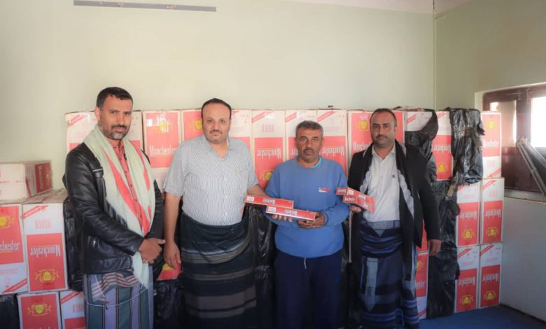 مصلحة الضرائب شبوة: إحباط تهريب 100 كرتون سجائر مهربة في عتق