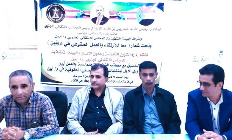 الإدارة القانونية والحقوقية بانتقالي أبين تعقد لقاءً تشاورياً لتعزيز العمل الحقوقي لمنظمات المجتمع المدني في المحافظة