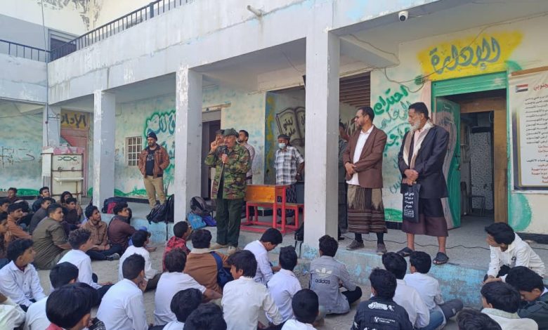 التوجيه المعنوي بحزام يافع يزور مدرسة الشهيد عبدالقوى بالمفلحي ويقدم محاضرة توعوية ارشادية وتعليمية
