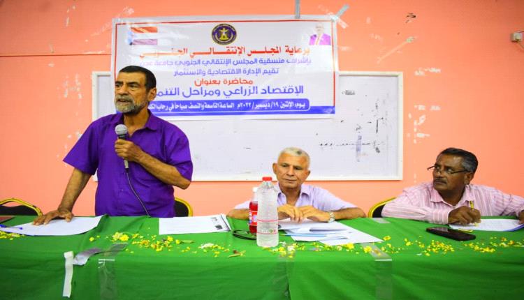 واستعرض الدكتور ناصر احمد جمباء رئيس الإدارة الإقتصادية والإستثمار بمنسقية الانتقالي جامعة عدن أهمية الاقتصاد الزراعي في الجنوب، بأعتباره القطاع الإنتاجي الأول بين مختلف القطاعات الاقتصادية.