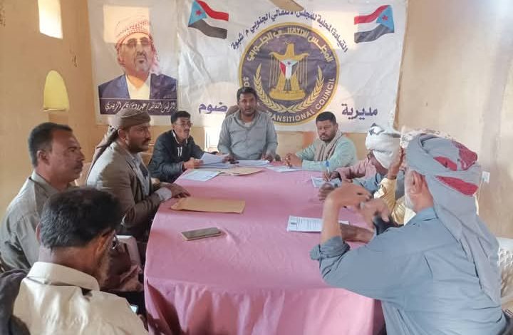 عقدت الهيئة التنفيذية للقيادة المحلية للمجلس الانتقالي الجنوبي في مديرية رضوم بمحافظة شبوة، اليوم السبت، اجتماعها الدوري لشهر ديسمبر، برئاسة الأستاذ سعيد محمد جعفوس، رئيس الهيئة.