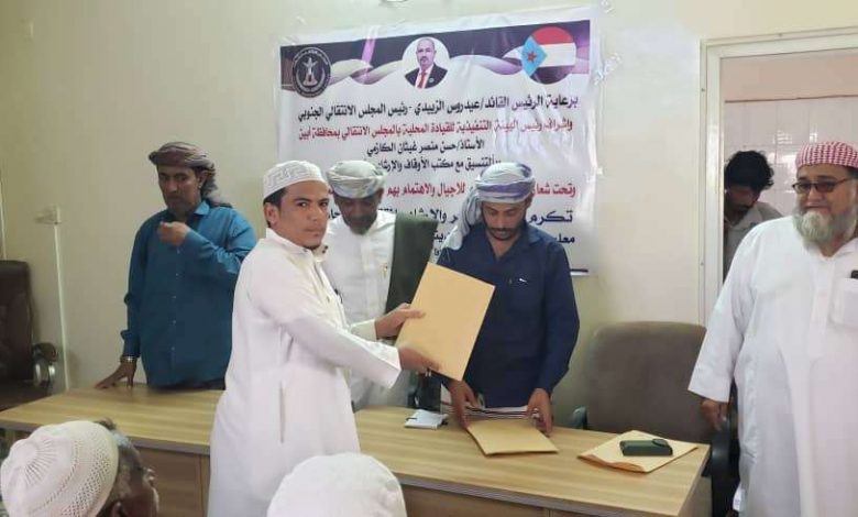 انتقالي أبين يكرم معلمي وطلاب الدورات الدينية الصيفية بزنجبار وخنفر