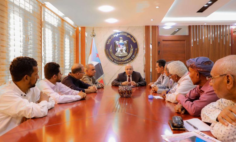 التقى الأستاذ علي عبدالله الكثيري، القائم بأعمال رئيس المجلس الانتقالي الجنوبي ورئيس الجمعية الوطنية، اليوم الأربعاء، الدكتور جنيد محمدالجنيد، رئيس اتحاد أدباء وكتاب الجنوب وأعضاء الأمانة العامة للاتحاد وأمانة فرع العاصمة عدن.