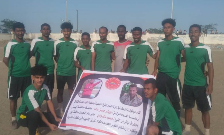 ضمن الدوري الرمضاني السنوي تحت رعاية محافظ محافظة أبين اللواء أبو بكر حسين ومدير الصندوق بالمحافظة منصور وادي وإشراف نادي الفجر الجديد وتنظيم اتحاد الفرق الشعبية بالكود