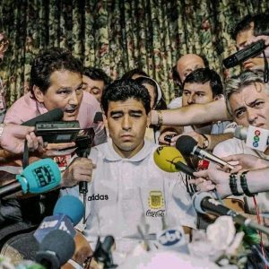 رئيس الاتحاد الارجنتيني استدعى مارادونا والطبيب الخاص بمنتخب الارجنتيني والطاقم البدني وحدث اجتماع وقال له: دييغو نريدك في امريكا !! (يمتلك وزن زائد 20 كيلو)