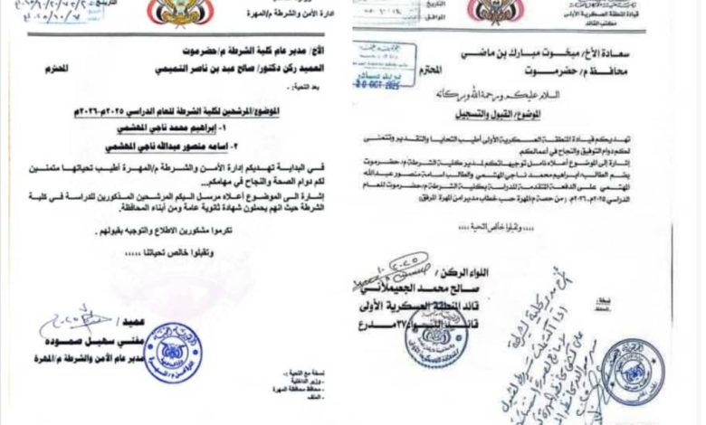 كشفت مصادر مطلعة إن السلطات الامنية بمحافظتي المهرة وحضرموت (الوادي) مكنت عناصر من حاضنة الحوثي ذمار والمحويت وحجة من اختراق كلية الشرطة في مدينة المكلا
