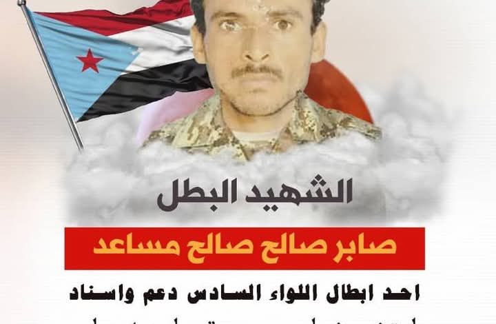 نعى العميد الركن علي ناصر المعكر، قائد اللواء السادس دعم وإسناد، استشهاد البطل صابر صالح صالح مساعد، أحد أبطال اللواء، الذي ارتقى شهيدًا إثر عملية إرهابية غادرة في وادي عومران بمديرية مودية، محافظة أبين.