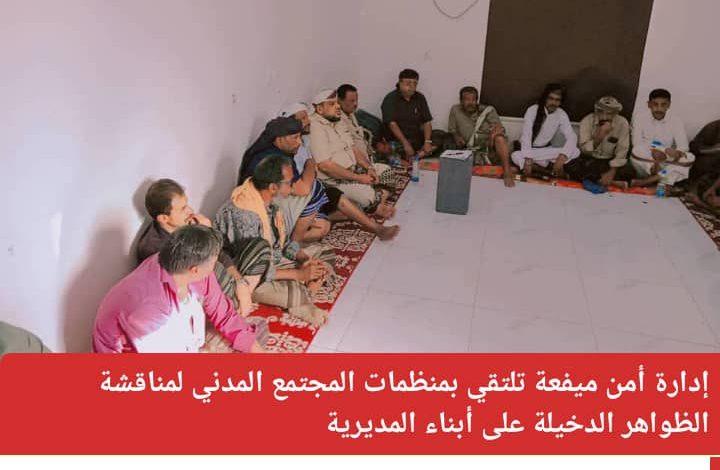 إدارة أمن ميفعة تلتقي بمنظمات المجتمع المدني لمناقشة الظواهر الدخيلة على أبناء المديرية