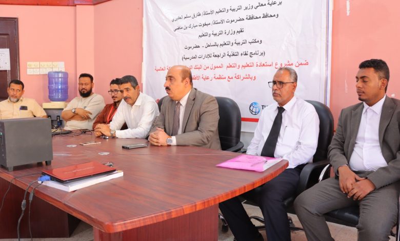 مدير مكتب تربية حضرموت الساحل يدشن برنامج لقاء التغذية الراجعة للإدارات المدرسية