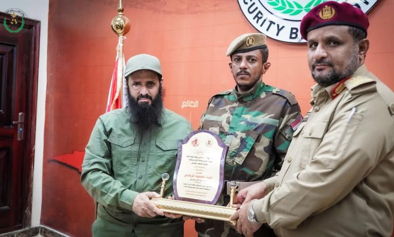 حضر التكريم العميد نبيل المشوشي، أركان لواء الدعم والإسناد وقائد اللواء الثالث، وعدد من قيادات وضباط قوات الحزام الأمني.