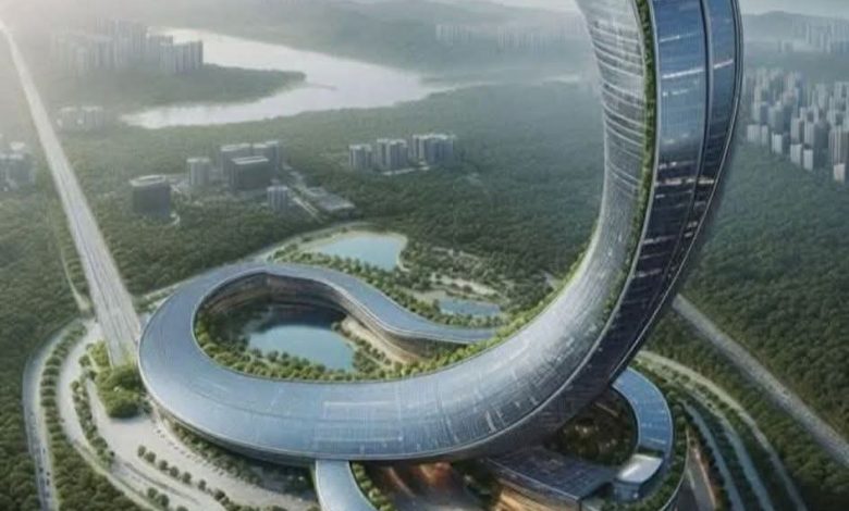 تصميم برج مستوحى من شكل الأفعى، حيث يتجلى ذلك في الانحناءات الديناميكية والبنية المتعرجة التي تشبه حركة الأفعى أثناء الزحف. المبنى يعكس المرونة والانسيابية، وهي سمات معروفة عن الأفعى، مما يعطيه طابعًا مستقبليًا وجريئًا. كما أن الدمج بين الطبيعة والهندسة الحديثة قد يكون مستلهمًا من رمزية الأفعى في الثقافات المختلفة، حيث ترمز إلى التجدد والقوة والتكيف مع البيئة.