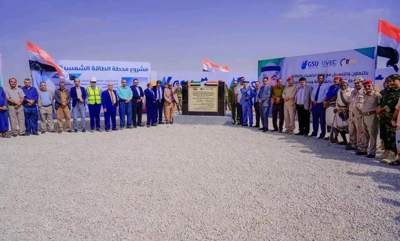 في خطوة تهدف إلى تعزيز مصادر الطاقة المستدامة في محافظة شبوة قام الأخ/ عوض محمد بن الوزير محافظ المحافظة رئيس المجلس المحلي ومدير عام المؤسسة العامة للكهرباء مجيب الشعبي، بوضع حجر الأساس لمشروع الطاقة الشمسية الممول من الأشقاء في دولة الإمارات العربية المتحدة.