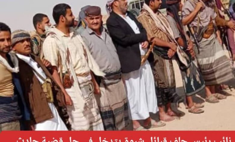 نائب رئيس حلف قبائل شبوة يتدخل في حل قضية حادث سير لمواطن من قبل طقم عسكري لأحد ألوية العمالقة
