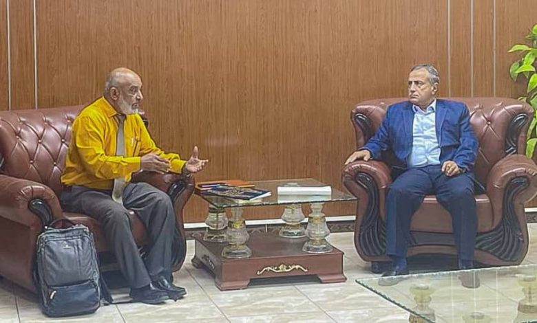بحث الأستاذ الدكتور/الخضر ناصر لصور رئيس جامعة عدن صباح الأربعاء في مكتبه بديوان رئاسة الجامعة، مع الدكتور/ثابت سالم العزب رئيس الجمعية الوطنية للبحث العلمي والتنمية المستدامة، مجالات التعاون المشترك بين الجانبين وسبل تطويرها.