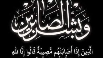 وابتهل الأستاذ / عبود ناجي في ختام برقيته إلى المولى عز وجل بأن يتغمد الفقيدة بواسع رحمته ومغفرته، ويسكنها فسيح جناته، ويلهم أهلها وذويها الصبر والسلوان.