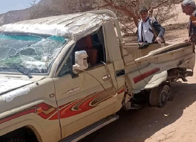 وقالت مصادر محلية، إن لغماً من مخلفات مليشيا الحوثي الإرهابية، انفجر، الأحد، بسيارة كانت تقل مواطنين من قبائل ذو محمد أثناء تنقلهم لتبادل التهاني بعيد الفطر المبارك في منطقة “عفي سلبه” بمديرية برط العنان.
