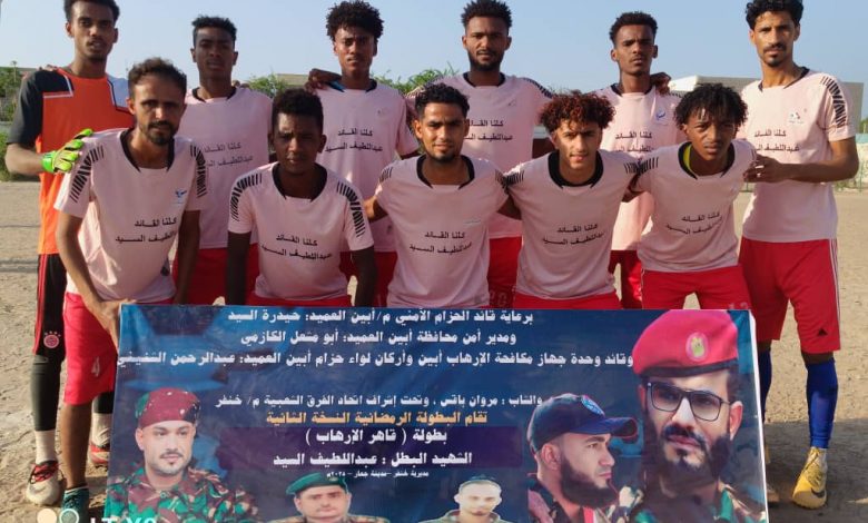برعاية القائد العميد حيدرة السيد قائد الحزام الامني أبين و العميد أبو مشعل الكازمي مدير آمن أبين والداعم الرئيسي للبطولة العميد عبدالرحمن الشنيني قائد اركان الحزام الامني ورئيس جهاز مكافحة الارهاب بمحافظة أبين و القائد أحمد العسيري قائد مكافحة المخدراة ، والشاب مروان باقس مدير عام صندوق النظافة أبين ، وإشراف إتحاد الفرق الشعبية بمديرية خنفر ، وبمشاركة 24 فريقيا” شعبيا” من مدينة جعار عاصمة مديرية خنفر قسمة إلى ثمان مجموعات يتأهل الأول والثاني من كل مجموعة.