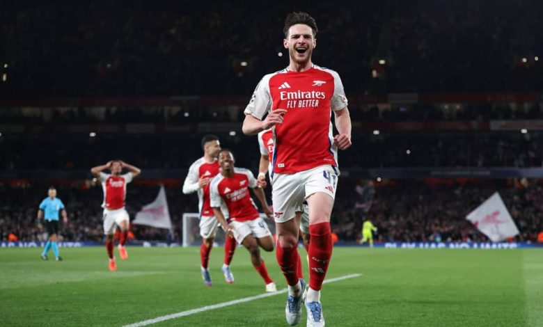 أهداف الفريق الإنجليزي جاءت عن طريق ديكلان رايس “ثنائية” وميكيل ميرينو، في الدقائق (58، 70، 75).