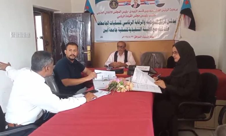 فريق التوجيه والرقابة الرئاسي يطلع على نشاط منسقيات كليات جامعة أبين