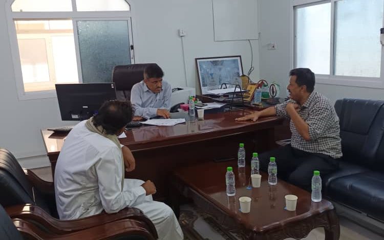 ناقش مدير عام مديرية رضوم بمحافظة شبوة الأستاذ هادي سعيد الخرماء مع الدكتور عوض سالم لقصم المدير العام التنفيذي للصندوق الاجتماعي للتنمية فرع المكلا.