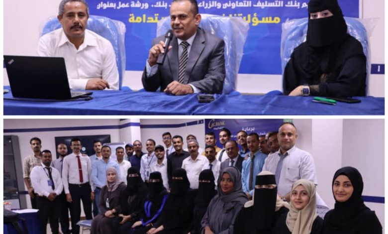 وتطرقت الورشة التي قدمها الدكتور عبد الرقيب العكيشي، واستهدفت عدد من موظفي مختلف الإدارات والفروع في البنك، إلى أهمية الحفاظ على البيئة وتعزيز الممارسات المستدامة في المؤسسات والمجتمعات، كما ناقشت أبرز التحديات البيئية التي تواجه العالم اليوم ودور الأفراد والمؤسسات في الحد منها.