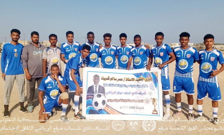 حجز عصر اليوم الثلاثاء فريق النهضة الرياضي بعزان محافظة شبوة مقعده في ربع نهائي دوري الفقيد عمر سالم قمبيت بفوزه المثير على فريق شباب الإتحاد جزول بثلاثه أهداف مقابل هدفين ويضرب موعدًا مع مستقبل الجول حجر، يأتي هذا الدوري برعاية جمعية صيادي الحسي التعاونية السمكية بميفع، وإشراف نادي شباب ميفع الرياضي، وتنظيم مجلس الفرق الشعبية بميفع، جمعتهما على أرضية ملعب تمارين نادي شباب ميفع الرياضي “الجسر” بمدينة ميفع الرياضية.
