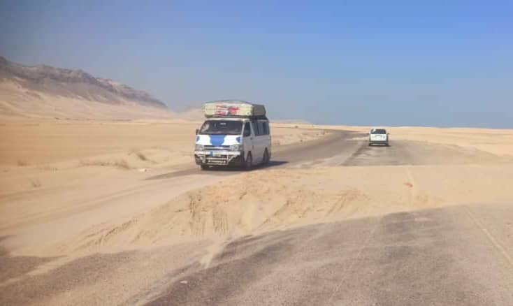 الكتبان الرملية في ساحل لمبح بميفع تُعيق حركة السير على الخط الدولي المكلا – شبوة – عدن