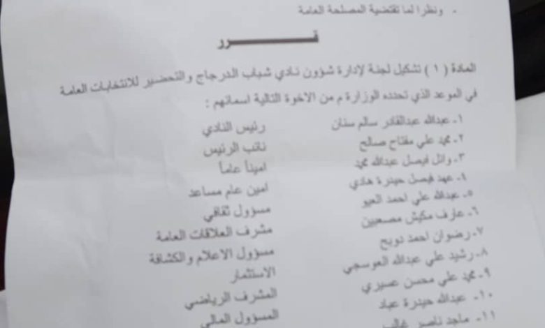 تشكيل لجنة لإدارة شؤون نادي شباب الدرجاج