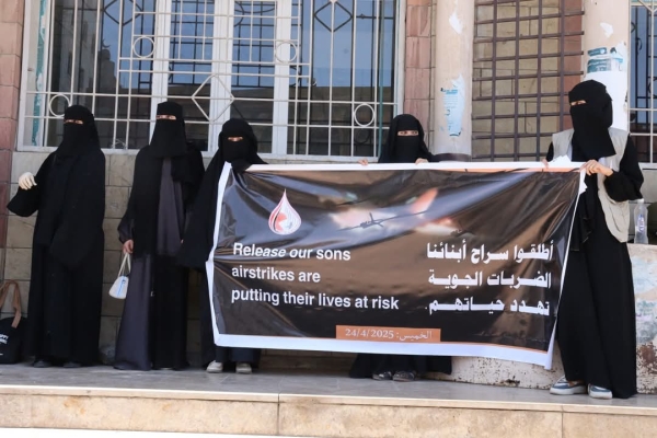 ودعت الرابطة في وقفة احتجاجية نظمتها صباح الخميس أمام مبنى محافظة تعز، إلى الإفراج الفوري عن المحتجزين، مشيرة إلى أن استمرار احتجازهم في مواقع قد تكون أهدافًا محتملة للغارات الجوية يُعرّض حياتهم لخطر جسيم، ويشكل انتهاكًا للقانون الدولي الإنساني.