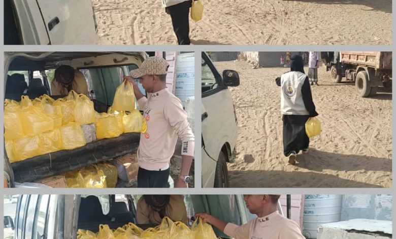 مؤسسة ثمار الخير توزع الثلج على الأسر المحتاجة في الكود بأبين