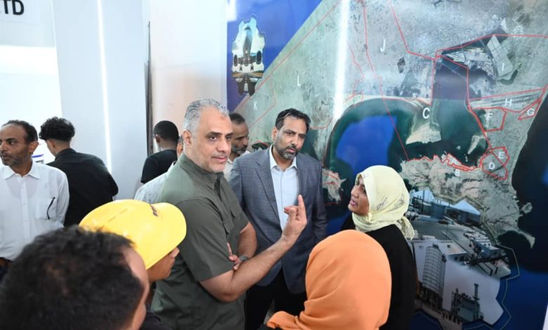المنطقة الحرة في العاصمة عدن تستقبل زوارًا بارزين وطلابًا في اليوم الثاني لمعرض الإعمار والبناء 2025