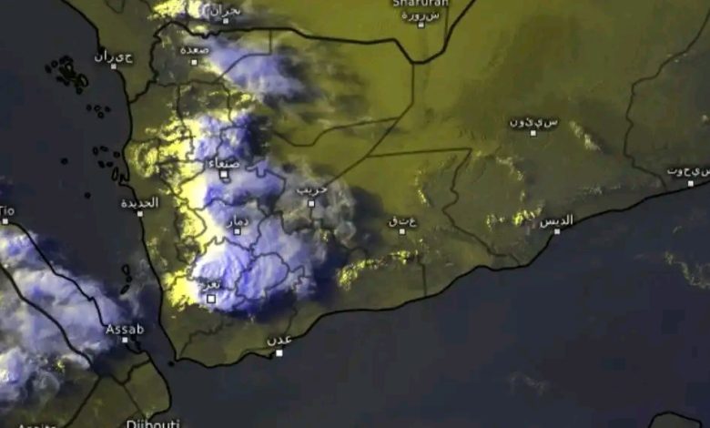 تظهر آخر صور الأقمار الصناعية نشاط رعدي ممطر بغزارة يؤثر على مناطق واسعة من المرتفعات الغربية. كما يلاحظ نشوء تكونات ركامية متفرقة على بعض مرتفعات جنوب حضرموت وشبوة وأبين، مع احتمالية هطول أمطار رعدية على بعض هذه المناطق خلال اليومين القادمين. هذا والله أعلم