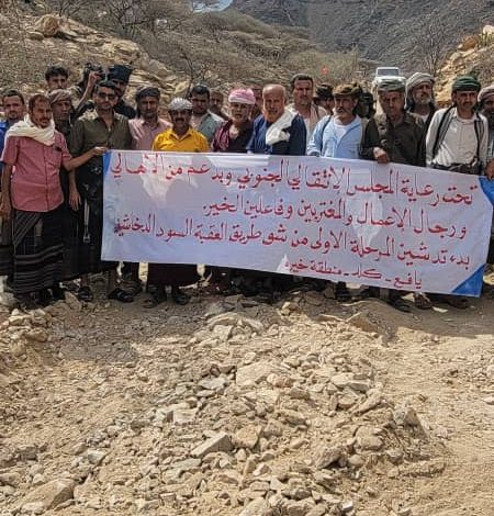 تدشين أعمال المرحلة الأولى من مشروع شق طريق “العقبة معطف الدخاشين”بمنطقة خيرة يافع كلد