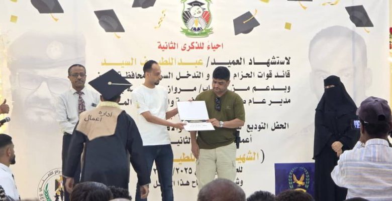 شهدت قاعة “روز” للاحتفالات بمدينة زنجبار فعالية احتفالية مميزة بمناسبة تخرج الدفعة الثانية من طلاب كلية الإدارة والاقتصاد بجامعة أبين– قسم إدارة الأعمال – للعام الجامعي 2024–2025، والتي حملت اسم “دفعة الشهيد القائد عبداللطيف السيد”، تخليدًا لذكراه وتزامنًا مع حلول ذكرى استشهاده.