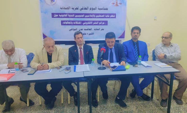 يحدث الآن.. نقابة الصحفيين والإعلاميين الجنوبيين تقيم ندوة قانونية حول: جرائم النشر الالكتروني… المشكلات والمعالجات.