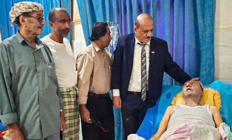 فريق من الجمعية الوطنية يطمئن على صحة العميد سالم باشادي بأحد مشافي العاصمة عدن