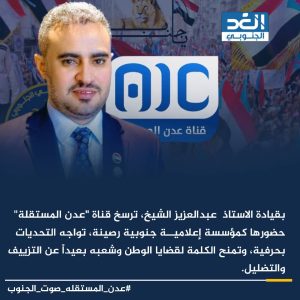 واستطرد مجاهد “لنقف جميعاً خلف قناة عدن المستقلة، ولنؤكد على أهمية دورها في إيصال صوت الجنوب إلى العالم، دعم القناة هو دعم لقضية الجنوب العادلة، هو خطوة نحو تحقيق الاستقرار والتنمية في المنطقة”.
