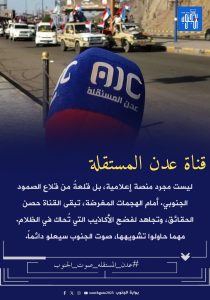 وفي المقابل يواجه الإعلام الجنوبي وفي مقدمته قناة عدن المستقلة حملات تشويه ممنهجة تقودها أقلام مأجورة فقدت مصالحها، وتتوافق أجندتها مع أعداء الجنوب، وتسعى هذه الحملات المشبوهة إلى النيل من مصداقية الإعلام الجنوبي وتشويه صورته وثنيه عن القيام بدوره الوطني. إلا أن هذه المحاولات البائسة لن تزيد الإعلام الجنوبي إلا إصرارا وعزيمة على المضي قدما في رسالته السامية، فقناة عدن المستقلة وكافة وسائل الإعلام الجنوبية الشريفة مدعومة بوعي أبناء الجنوب وإيمانهم بقضيتهم، وستظل الصوت الصادق والأمين الذي ينقل الحقيقة ويدافع عن مصالح الجنوب وأبنائه في كل زمان ومكان.
