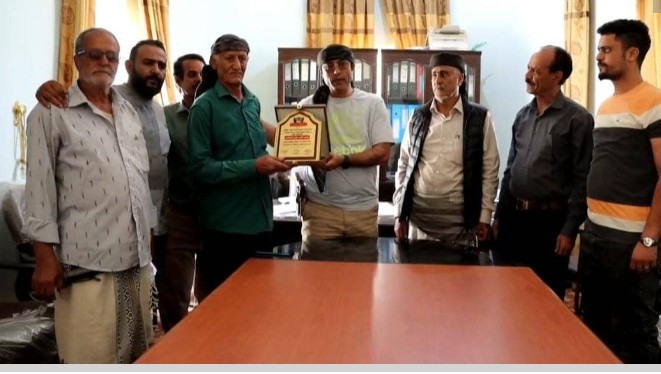 السلطة المحلية بالشعيب الضالع تكرم مدير الأشغال السابق بدرع الوفاء