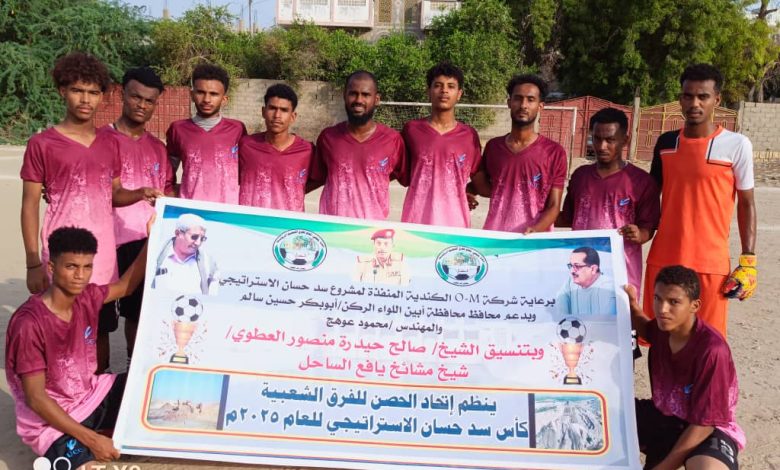 برعاية شركة O-M الكندية المنفذة لمشروع سد حسان الاستراتيجي وبدعم محافظ محافظة أبين اللواء الركن أبو بكر حسين سالم و المهندس محمود العوهج وتنسيق الشيخ صالح حيدرة منصور العطوي شيخ مشائخ يافع الساحل وتنظيم إتحاد الفرق الشعبية بالحصن ، وبمشاركة 16 فريقا شعبيا من مختلف مناطق الدلتا تلعب بنظام خروج المغلوب من المرة الاولى.