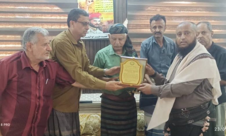 وعلى هامش التكريم الذي حضره مستشار وزير الدفاع اللواء ركن محمود مثنى علي جبيران ومدير عام الإعلام بمحافظة لحج الاستاذ سعدان مسعد اليافعي والعميد ركن محضار السعدي امين عام جمعية السعدي الخيرية وعضو الهيئة للمجلس المحلي بمحافظة لحج الاستاذ ثابت محمد وعدد من أعضاء القيادات المحلية للمجلس الإنتقالي بالمحافظة والسلطات المحلية والقيادات العسكرية والأمنية والأطباء والدكاترة والمشايخ والشخصيات المجتمعية ورجال المال والاعمال والشعراء والأدباء ..