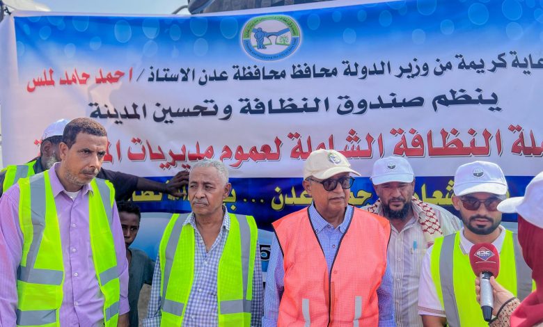 برعاية وزير الدولة، محافظ العاصمة عدن، أحمد حامد لملس، دشن صندوق النظافة وتحسين المدينة صباح اليوم حملة نظافة شاملة تستهدف جميع مديريات العاصمة عدن، تحت شعار: “جمال عدن باستدامة نظافتها”.
