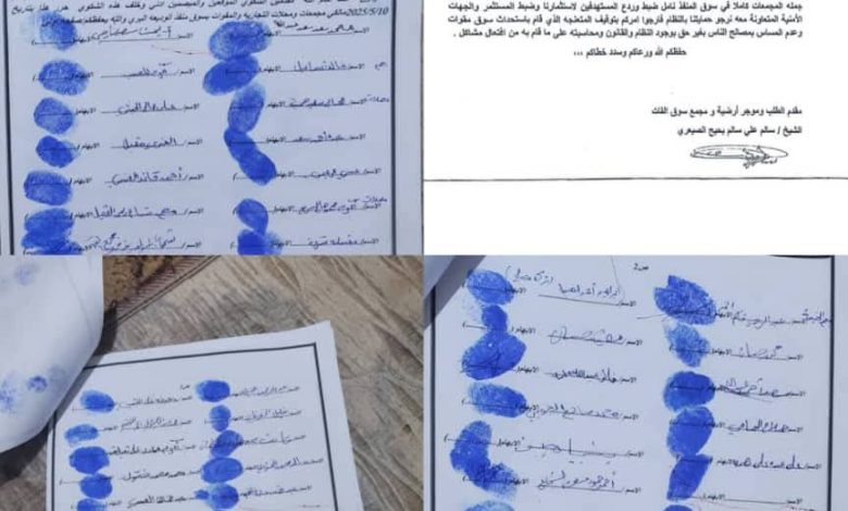 مؤكّدين أن الكتيبة تفرض قبضتَها الأمنية والاقتصادية على السوق، وتُدير أنشطته كما لو كانت الجهة المالكة أو الجهة الرسمية المخوّلة بإدارته، وليست كتيبةً تتبع المؤسسة العسكرية.