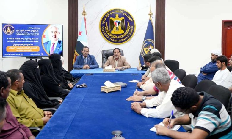 نظمت الدائرة السياسية في الأمانة العامة لهيئة رئاسة المجلس الانتقالي الجنوبي، اليوم الأربعاء، محاضرة توعوية بعنوان “المجلس الانتقالي الجنوبي.. إنجازات وثبات رغم العواصف”.