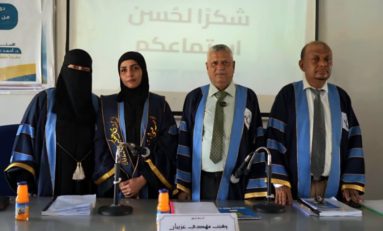 وأشرف على الرسالة الأستاذ المساعد الدكتور أحمد سالمين منصور، فيما تكونت لجنة المناقشة من الأستاذ المشارك الدكتور وهيب مهدي عزيبات من جامعة عدن (رئيسًا ومناقشًا خارجيًا)، والأستاذ المساعد الدكتورة دعاء سالم باوزير (مناقشًا داخليًا).