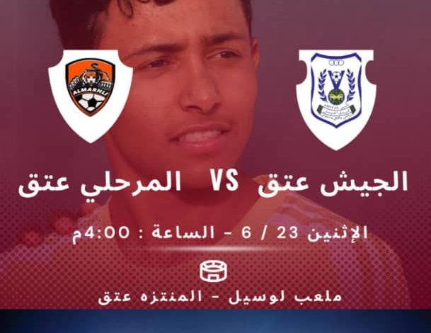 وجاء تأهل فريق الجيش عتق إلى النهائي بعد تخطيه عقبة شباب عياذ في مباراة مثيرة انتهت بنتيجة (2/3) ، بينما بلغ المرحلي عتق المباراة الختامية عقب فوزه بصعوبة على النجوم حبان بنتيجة (1/2).