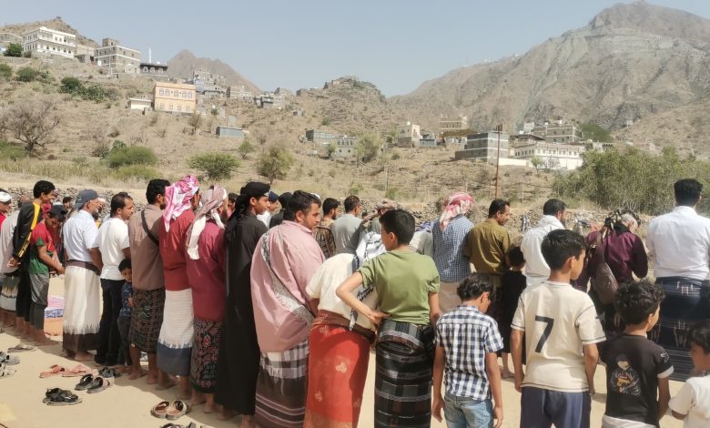 أبناء مناطق تجمع الرباط بيافع رصد يؤدون صلاة الاستسقاء