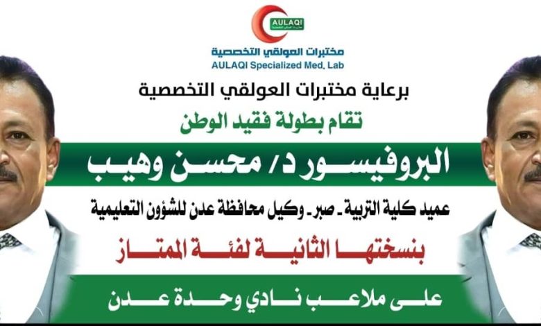 يسدل الستار مساء يوم الجمعة القادم، الموافق 27 يونيو 2025م، عن منافسات بطولة فقيد الوطن البروفيسور د. محسن وهيب بنسختها الثانية لفئة الممتاز، التي تقام برعاية مختبرات العولقي التخصصية، على ملاعب نادي وحدة عدن العشبية بمديرية الشيخ عثمان، شارك فيها 32 فريقا شعبيا من مختلف مديريات العاصمة عدن، وهي البطولة التي يشرف على تنظيمها الكباتن نزار السحولي وصلاح الاصبحي.