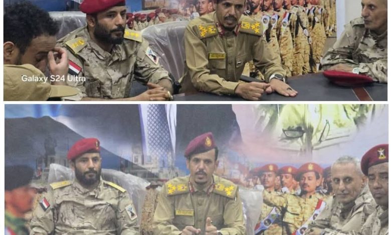 قائد اللواء الأول دعم وإسناد العميد نصر اليافعي يكرم خريجي الكلية الحربية المنتسبين للواء