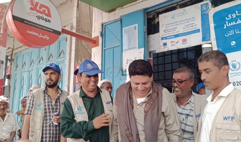مدير عام الحوطة يدشن صرف التحويلات النقدية(البصمة) المقدمة من برنامج الغذاء العالمي